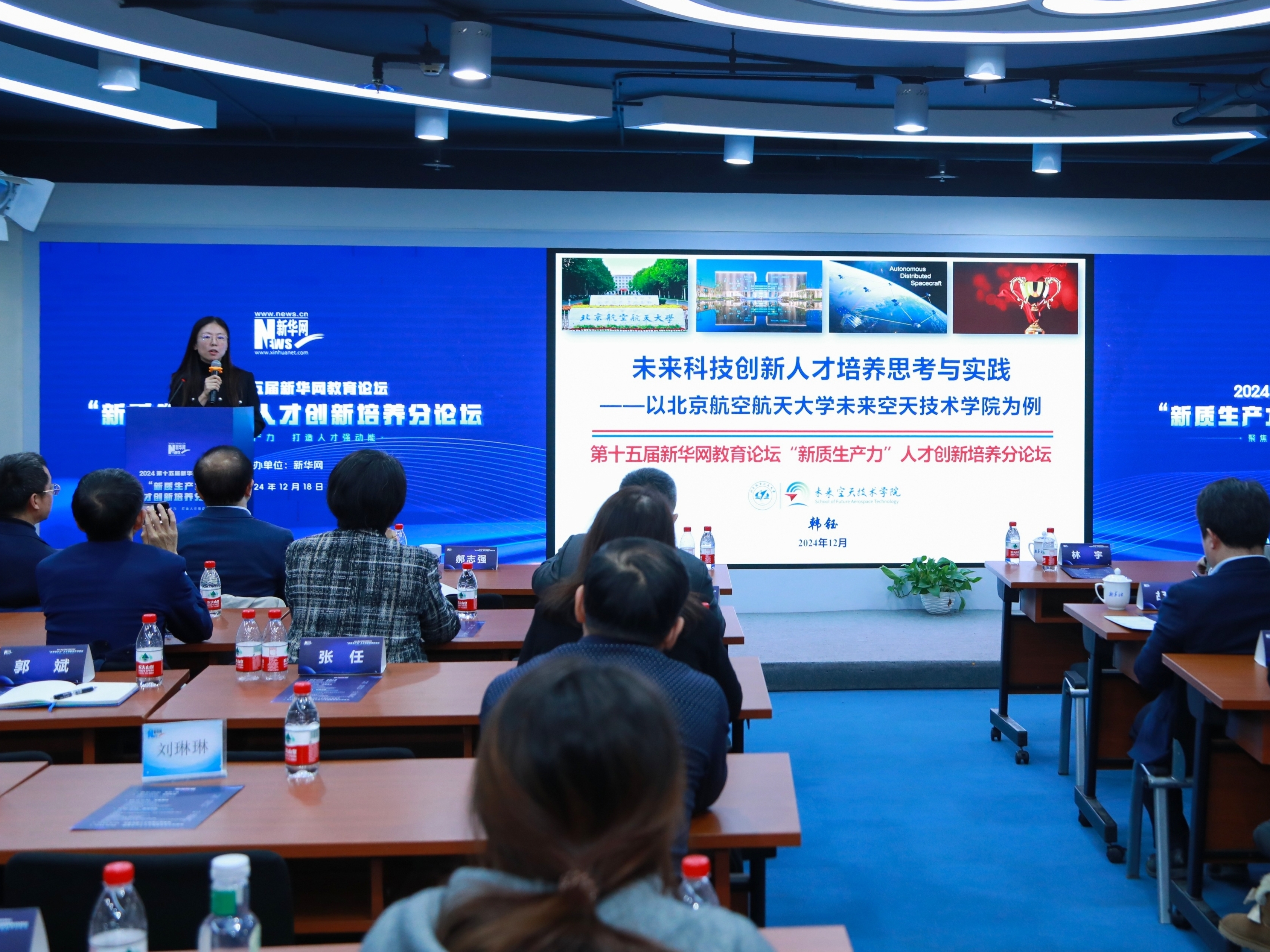 (通讯员 程薇)12月18日上午,第十五届新华网教育论坛“新质生产力”人才创新培养分论坛在北京金隅大厦举行,北航未来空天技术学院副院长韩钰及相关教师受邀参加。韩钰做题为《未来科技创新人才培养思考与实践——以北京航空航天大学未来空天技术学院为例》的主题演讲,分享了学院三年来构建未来科技创新人才培养新范式的思考与实践,以及在促进教育、科技、人才一体化发展,畅通科教融汇、产教融合机制,构筑协同育人与协同创...
