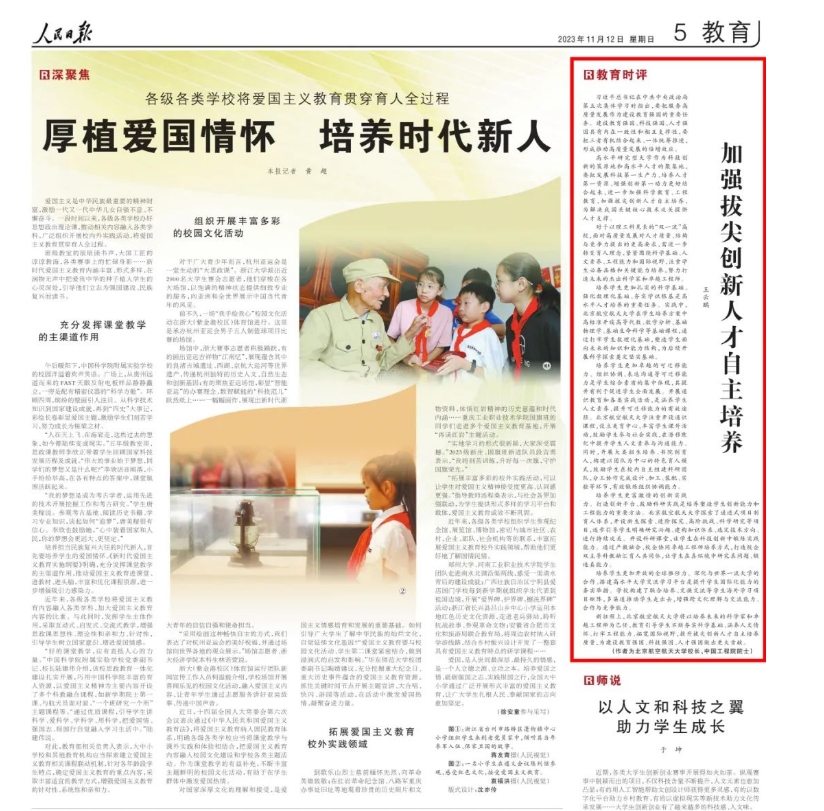 《人民日报》:北京航空航天大学培养拔尖创新人才...