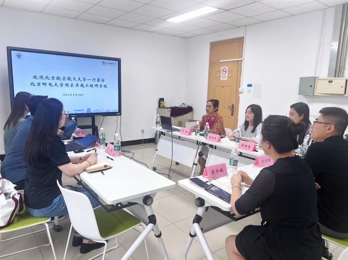 6月20日,北航国家卓越工程师学院工程师技术中心副主任姬瑞鹏、教学运行与质量主管刘欢、张希萌一行赴北京邮电大学国家卓越工程师学院调研交流。双方各自介绍了学院目前的建设情况和未来的规划,并围绕管理运行机制、校企导师队伍建设、培养方案制定、课程体系建设、专项试点招生、工程师技术中心建设、入企专业实践等议题进行了充分的交流