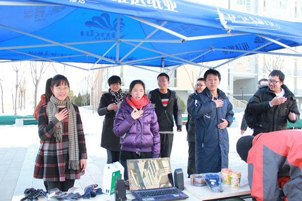 纵使寒风凌冽,高等工程学院同学们的热情仍然清晰地传递给了路过的每一个同学,带给了大家严寒中的一缕温暖。