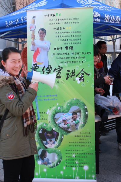 2012年12月18日中午12时许,沙河校区3、4号公寓楼之间,高等工程学院大一、大二的同学们共同组织了一场感恩月外场宣传活动。