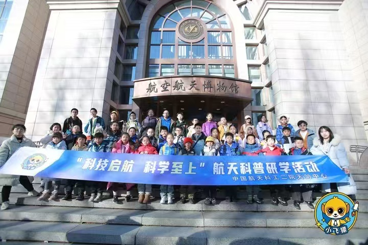 在学生党员的带领下,研学团来到航空航天博物馆,依次参观了长空逐梦、银鹰巡空、神舟问天、空天走廊四个展区。在志愿者生动细致的讲解下,了解了飞行器发展的历史,增长了航空航天科普知识和对中国空天事业的了解,在心中埋下了空天报国精神的种子。小朋友们对馆内的航空航天展品充满了好奇与向往,纷纷提出了自己的疑问,并得到了学生党员们的耐心解答。活动结束后,全体人员在航空航天博物馆门前合影留念。