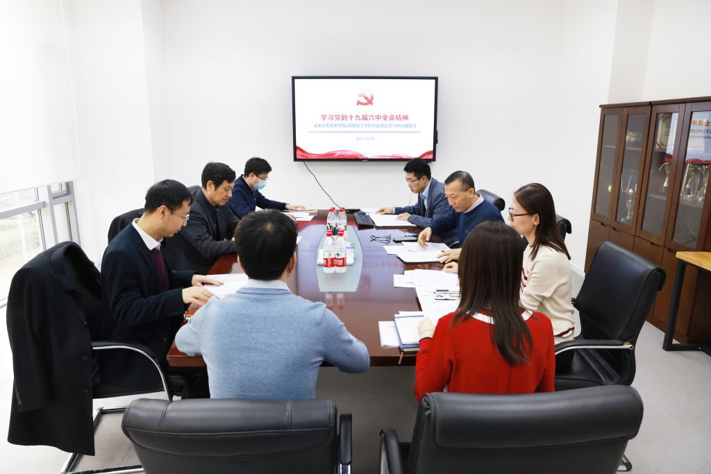徐惠彬校长首先对学院党委理论学习中心组专题学习“党的十九届六中全会精神”进行了指导,学院党委书记刘科生主持了学习环节。常务副院长马齐爽进行了领学发言,副院长韩钰、院长助理徐墨客分别进行了交流发言。徐校长指出,党的十九届六中全会是在我们党成立一百年之际,党领导人民实现第一个百年奋斗目标、向着第二个百年奋斗目标迈进的重大历史关头召开的。要深刻认识党的十九届六中全会的重大意义和《决议》的核心内容,要把学习宣传贯彻党的十九届六中全会精神作为当前和今后一个时期的重大政治任务,切实加强领导、把牢正确方向、紧密联系实际,确保全会精神层层推进、取得实效。
