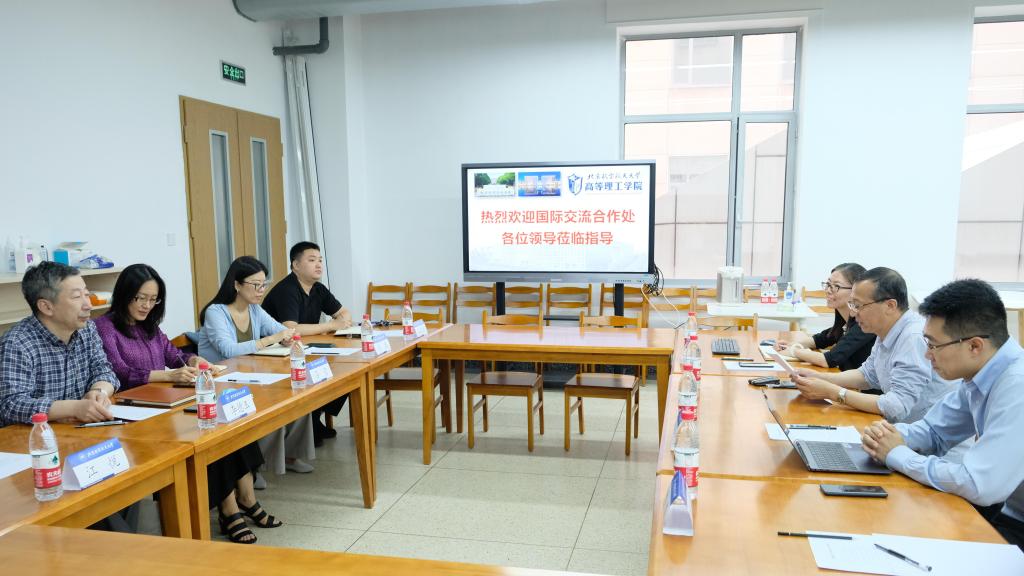 学院书记刘科生对李德玉处长一行表示热烈欢迎,对国际交流合作处长期以来对高等理工学院的支持表示衷心感谢。副院长韩钰从学院国际化工作的总体思路、重点举措与实施成效、困难不足与工作规划三方面介绍了学院国际化工作的基本情况。学院常务副院长马齐爽、党委书记刘科生就拔尖创新人才培养和未来空天技术学院建设背景下学院未来国际化工作的思路、重点和难点进行介绍。随后双方就国际化人才培养、海外资源拓展等问题进行深入探讨。