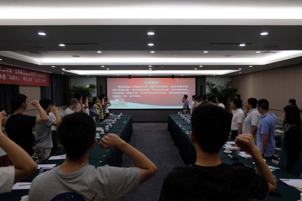 仪式结束后,高博班党建工作站和青年人才党建工作站举行了第一次共建活动——喜迎建党98周年暨“不忘初心·牢记使命”主题党日活动。活动中,师生党员集体重温入党誓词、交流心得体会、学习理论书籍。活动最后,教师党员向高博班学生党员赠送书籍《梁家河》。主题党日活动进一步加深了参会师生党员对“不忘初心、牢记使命”精神实质和思想内涵的理解,为做新时代的追梦人积蓄了力量。