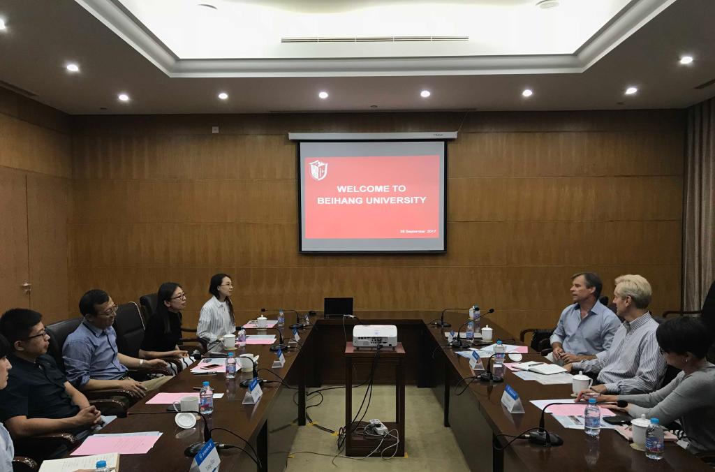 会谈在我校记录片《今日北航》的播放中拉开序幕。马齐爽常务副院长代表学院对Ryan Johnson副院长一行来访表示热烈欢迎。他表示,亚利桑那州立大学可持续发展学院作为全美第一所致力于为人类发展中面临的环境、经济和社会等问题寻求解决方案的可持续发展学院,在学生国际化教育和社会责任感培养上进行了很好的探索,双方具有很大的合作空间和潜力。自2015年开展交流以来,双方进行了多次互访,并于今年一月在美国举办了首期寒假学校,派出16名学生参加,学生在增长了知识的同时也拓展了国际视野。希望以此次来访为契机,深入开展学生交换、教师互访,推动双方合作迈向新阶段。