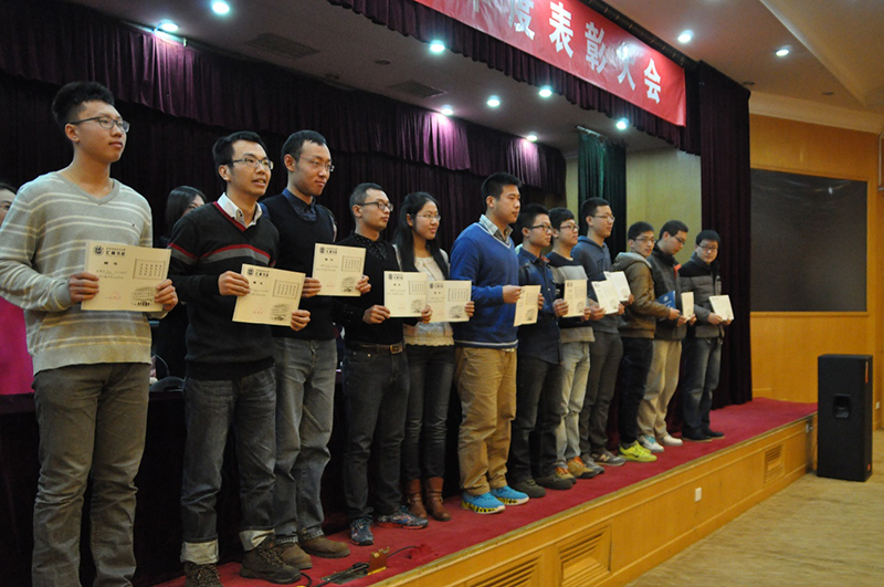 本次表彰大会总结了过去一学年里本院各级学生在学习,竞赛,课外活动等方面取得的成绩与荣誉。为了表彰同学们取得的成绩,鼓励同学们求真务实,开拓创新,学院颁发了学习优秀奖、竞赛优秀奖、课外优秀奖、优秀创新奖、全面发展奖五个个人奖项,和优秀社会工作团队奖、优秀竞赛团队奖、优秀社会实践团队奖、优秀课外活动团队奖、优秀创新团队奖五个团队奖项,颁奖对象涵盖11、12、13级学生。获奖同学在台上的讲话极大地激励了在场的学生们。之后,学院将院长特别奖颁发给了12级辅导员张思达、13级辅导员李艳茹以及14级辅导员王崇宇,以表彰他们为学院做出的突出贡献。
