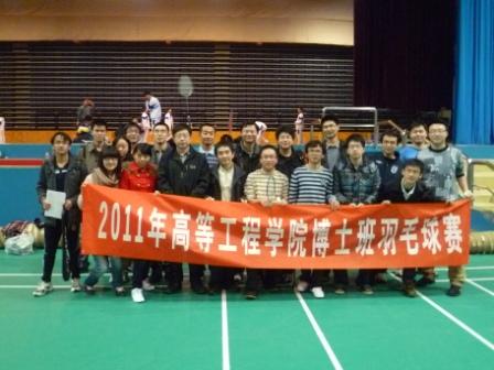 12月2日下午2:00,2011年高等工程学院博士生班羽毛球联赛在北航新体育馆主馆举行,来自高博班四个年级的近三十余名选手参加了男子单打、男子双打、女子单打、混合双打等四个项目的比赛并最终角逐出了各个单项的前四名。