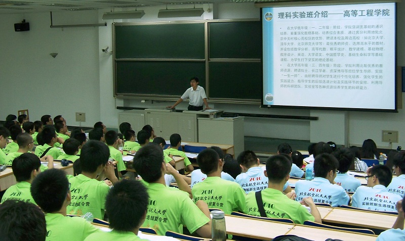北京航空航天大学文、理科实验班2010级新生选拔夏令营于今天接受营员报到,来自于高等工程学院、数学与系统科学学院及人文学院的相关负责人和二十多名志愿者参与了此次迎新活动。