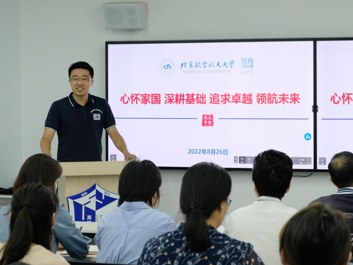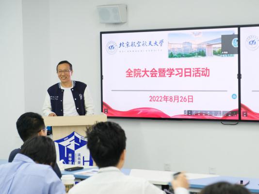 会上,学院党委书记刘科生作了题为《心怀家国 深耕基础 追求卓越 领航未来》的主题报告,系统传达了上级有关会议精神和学校2022年暑期工作会精神,结合建校70周年、建院20周年通报了学院改革发展的最新进展,介绍了今年拔尖计划、未来空天领军计划和工程硕博士招生情况,强调要继续扎实做好常态化疫情防控、消防安全、网络安全及实验室管理等工作,并就统筹发展与安全做好新学期工作进行了总体部署。