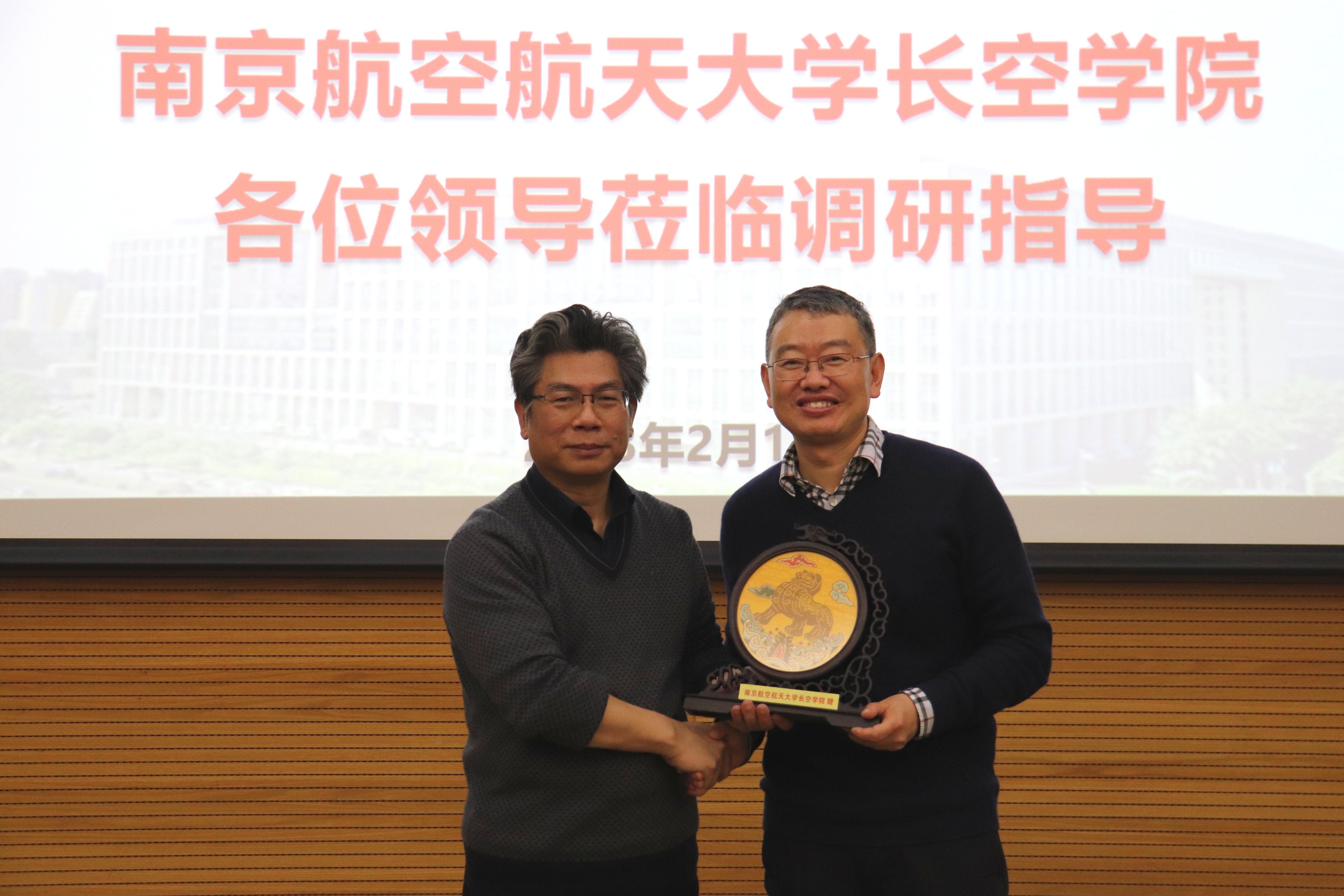 2月18日上午,南京航空航天大学长空学院常务副院长蒋彦龙、副院长张林等一行到访我院进行调研交流。我院院长曹庆华、副院长韩钰、党委副书记王涛等在新主楼会议中心第八会议室会见来宾并进行座谈,学院相关工作人员参加。