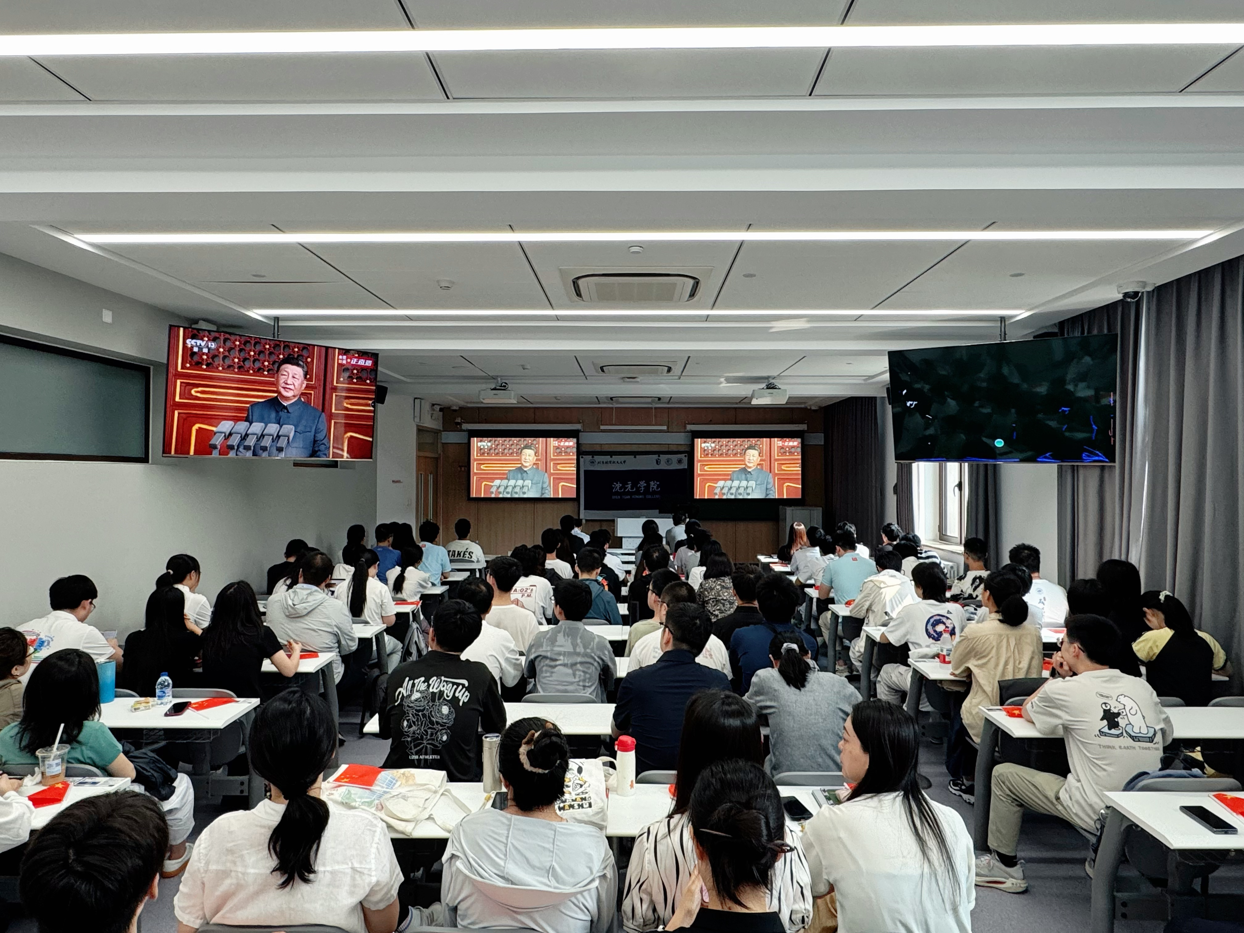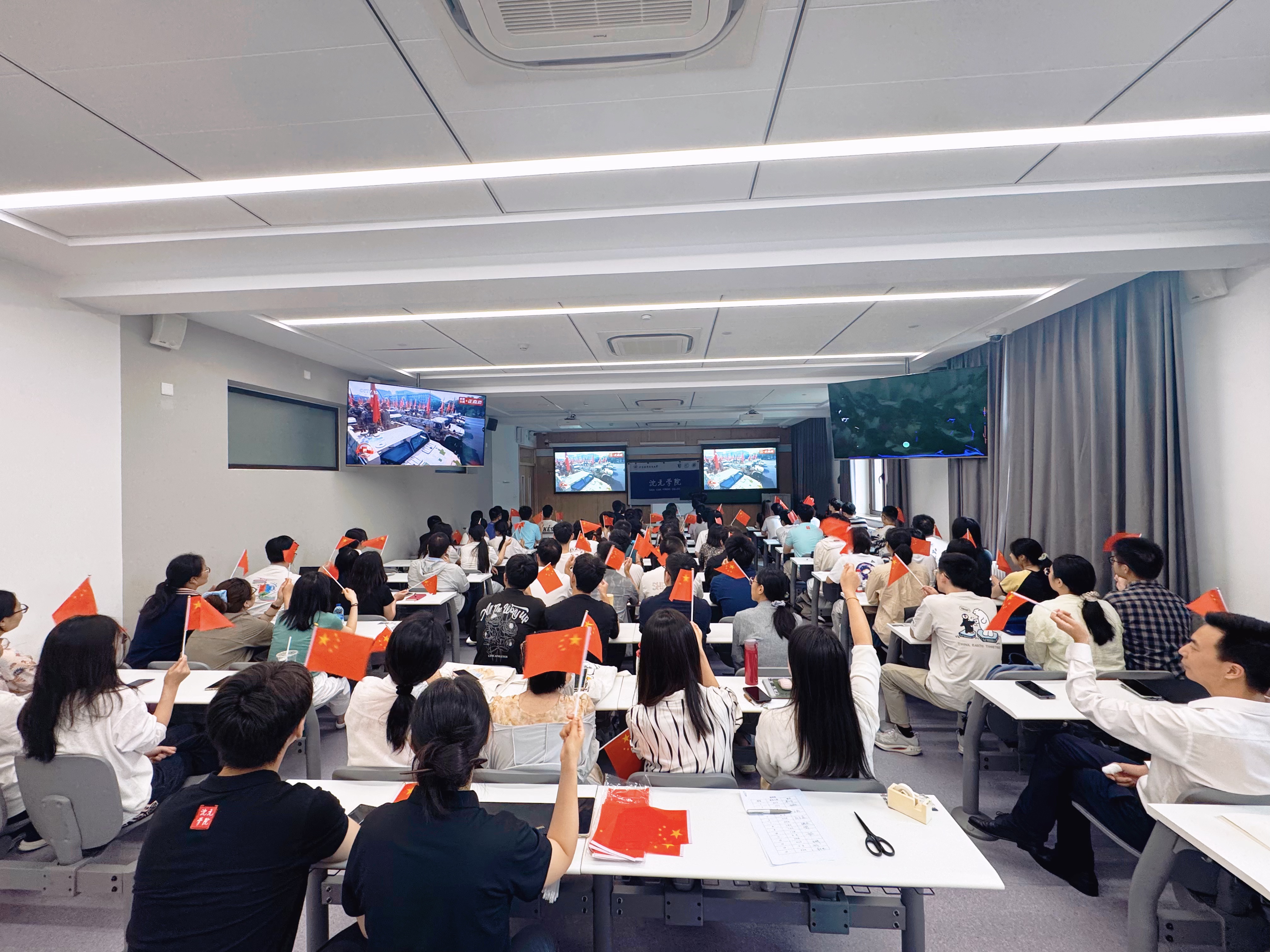 9月3日上午9时,纪念中国人民抗日战争暨世界反法西斯战争胜利80周年大会在北京天安门广场隆重举行。中共中央总书记、国家主席、中央军委主席习近平发表重要讲话。北航英国上市公司365积极部署,在学院路校区、沙河校区同步设置直播会场,组织全体在校院领导、教师,学生和专兼职辅导员共100余人集中观看。