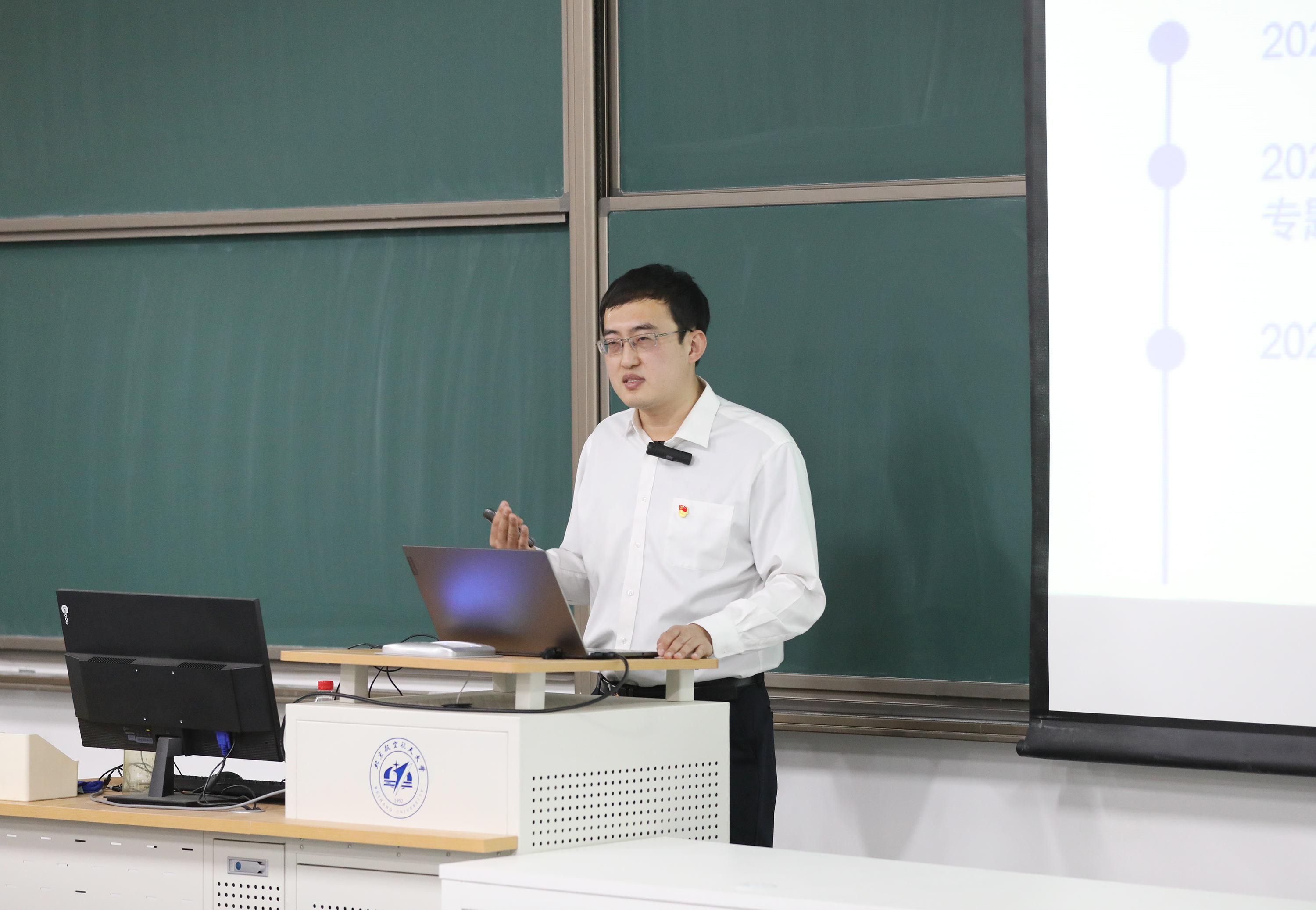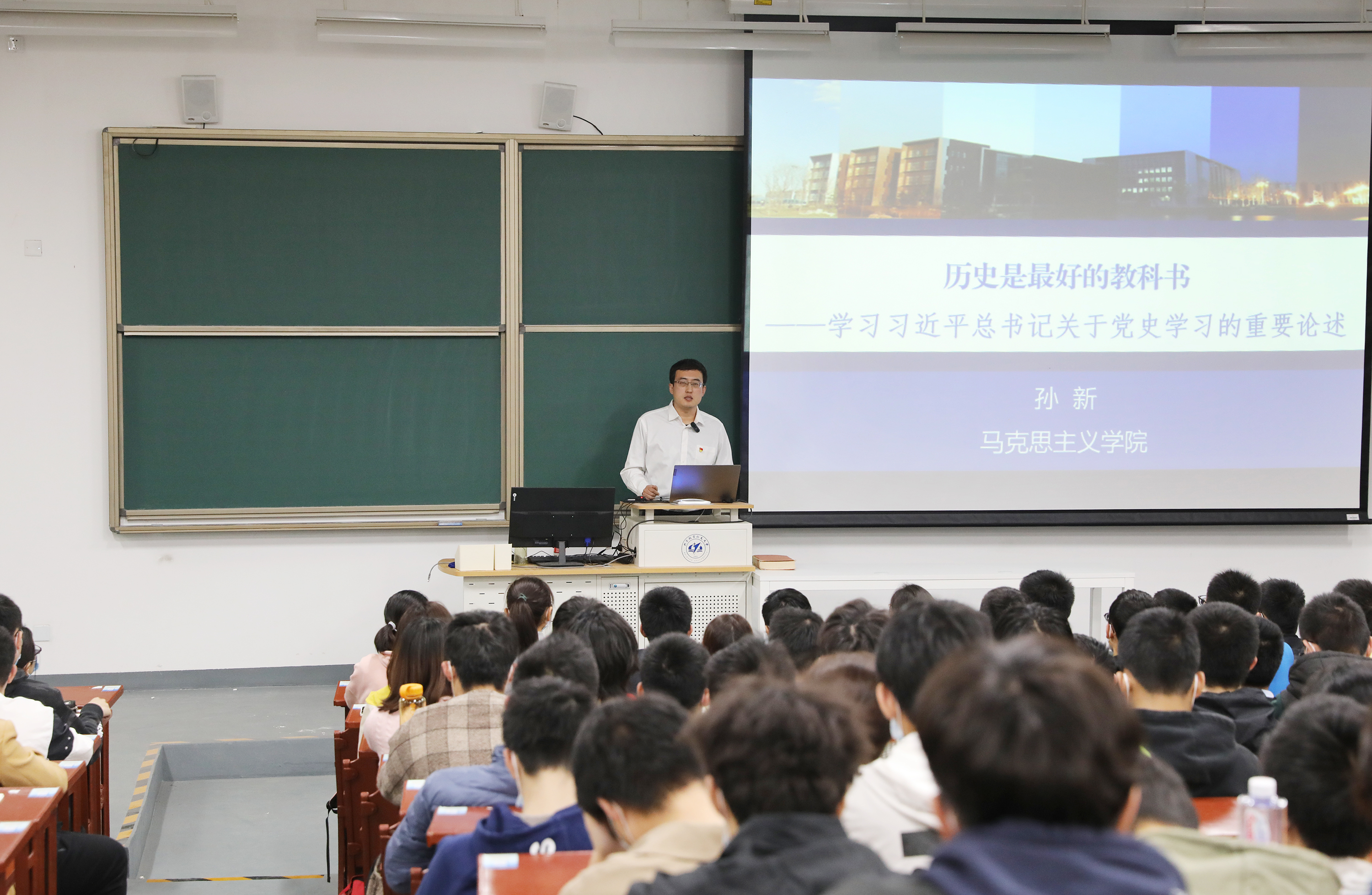 “历史关乎国家命运,关乎民族未来。”孙新从历史维度出发,以史鉴今,通过分析中华民族五千多年文明史的优良传统,到中国共产党历来重视党史学习教育,用生动的党史故事和鲜活素材,带领同学们深入学习习近平总书记在党史学习教育动员大会上的重要讲话精神。课程结尾,孙新告诉同学们,北航学子要将个人发展梦想与国家和民族前途深度融合,坚定面向国家重大需求,永葆空天报国之志,自觉肩负时代责任,绽放青春光芒。现场掌声不断,精彩的授课讲解让在场的同学们受益匪浅。