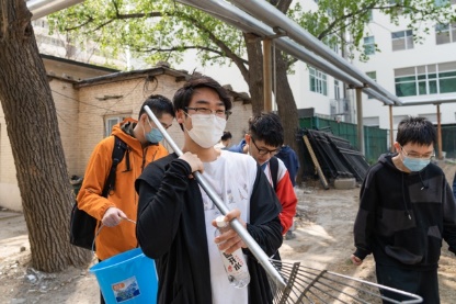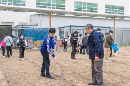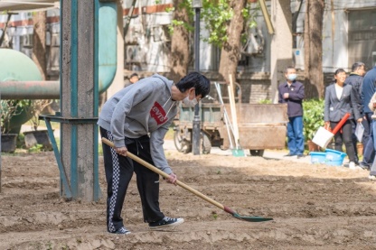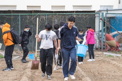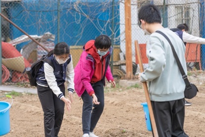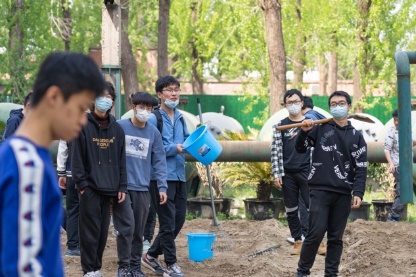 在劳动实践环节中,学生教职工们按照4到5人一组分组领取铁楸、平耙及一桶种子。组内成员分工合作进行播种、翻土、搂平,在600多平米的土地上种下百日草的种子。本次活动中,师生们不仅将百日草的种子播撒在了北航校园的土地上,也将尊重劳动的精神孕育在自己的心中。