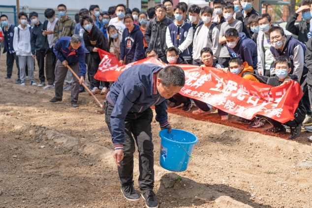 在和煦的春风里,学生与教职工在二院所内西南角相聚。活动正式开始后,主持人介绍与会领导嘉宾及今日活动的主要内容,并邀请未来空天技术学院/高等理工学院学生代表祁麟岳同学发言。随后,后勤职工李生为同学们讲解具体播播种步骤并示范播种过程。