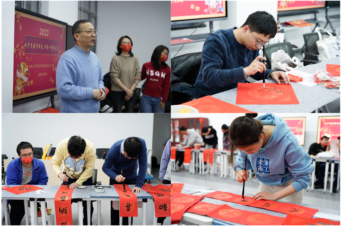 学院还为大家准备了笔墨纸砚,书写春联送祝福,浓浓墨香迎新春。同学们一同参与团圆联欢小游戏,辞旧岁共迎新年。
