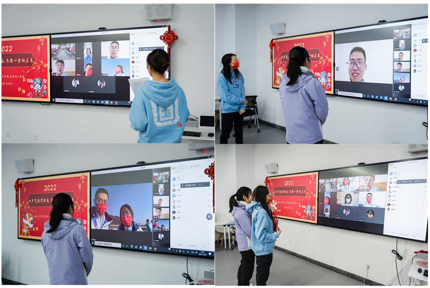 在新主楼C座301教室“欢声笑语贺新春、齐聚一堂向未来”主题联欢活动上,学院负责人向在校本博学生们送上新春祝福,并为大家发放春节慰问品。活动现场与冬奥志愿者连线,线上线下云团聚,将新春问候和美好祝福送至冬奥志愿服务前线。