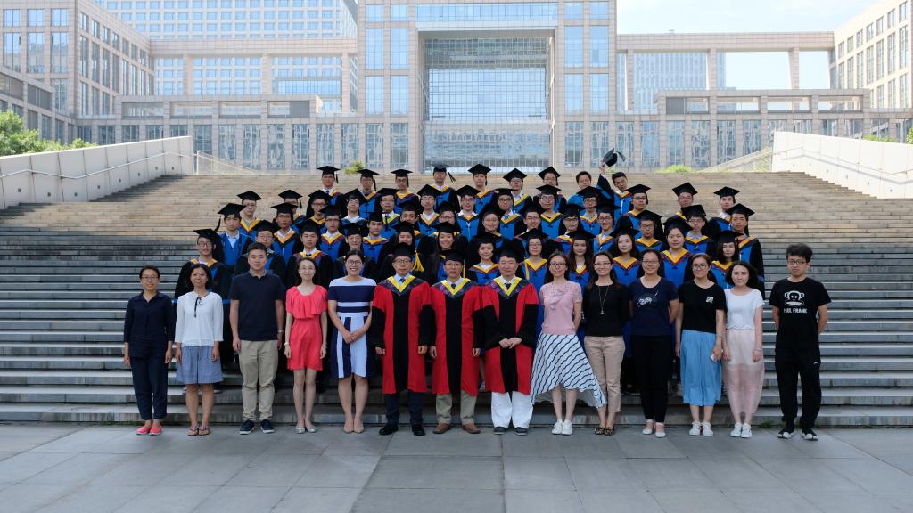 毕业典礼结束之后,学院领导和毕业生们在新主楼前合影留念,将四年的青春过往定格在记忆之中。