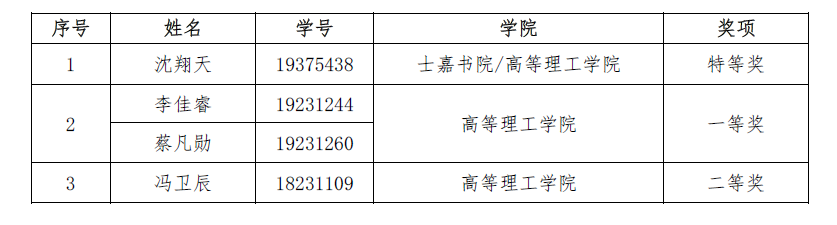 关于2020年北京航空航天大学物理竞赛高等理工学院获奖名单