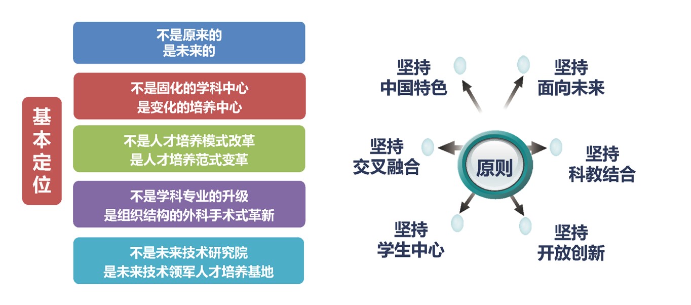 北航未来空天技术学院聚焦空天领域国家重大需求和人类发展需要,瞄准未来10-15年的前沿性、革命性、颠覆性技术发展,坚持创新驱动,坚持“厚植情怀、强化基础、突出实践、科教融通”的人才培养方针,按照“厚基础、重交叉、深浸养、强协同”的建设理念,厚植空天报国情怀,强化空天信融合,深化科教融通、产教融合,培养一批引领未来空天科技发展,具有想象力、洞察力、执行力、领导力等核心素质,德智体美劳全面发展的未来空天系统大师,探索拔尖创新人才培养的“北航范式”。