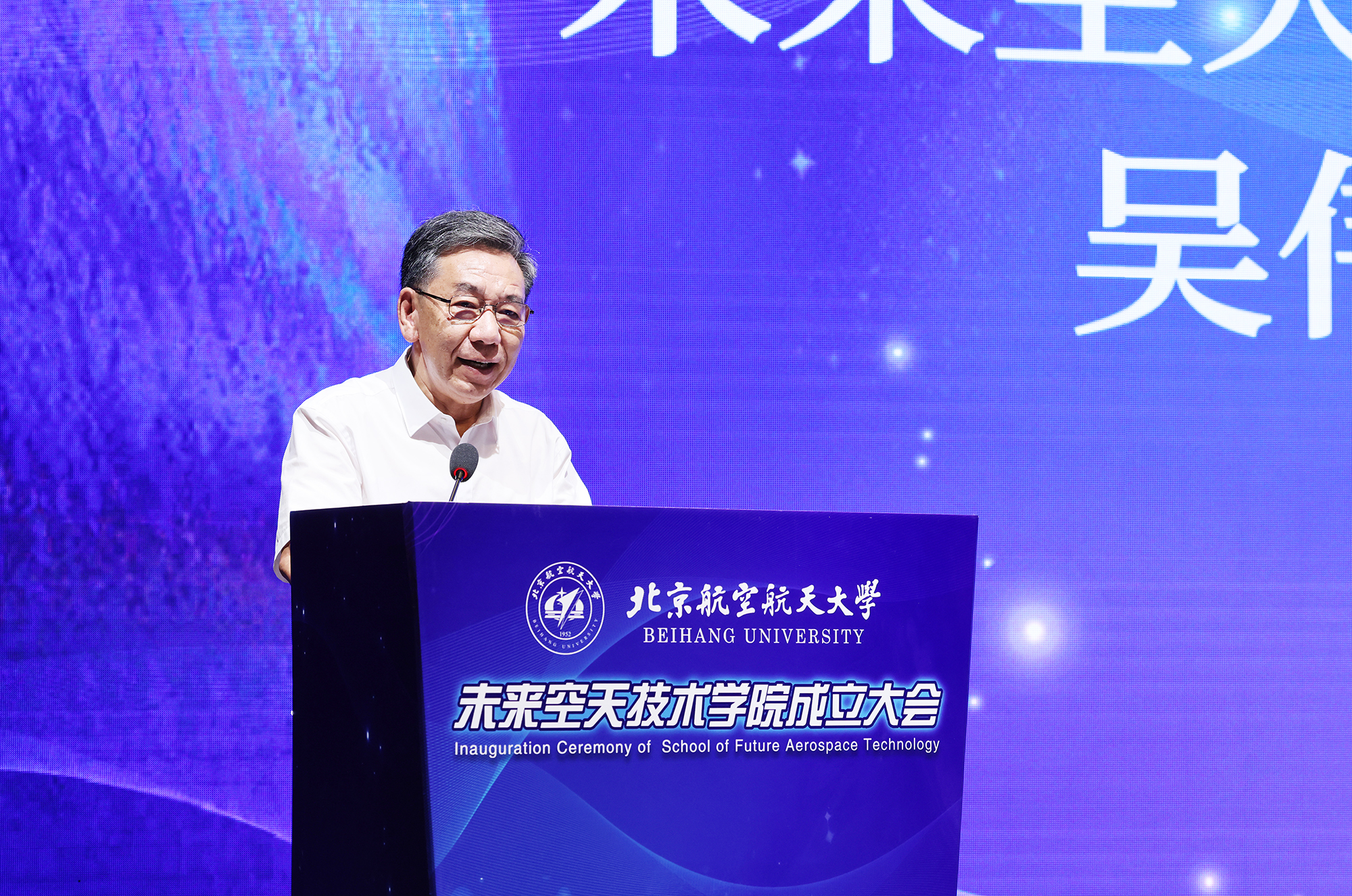 北航未来空天技术学院院长、中国探月工程总设计师吴伟仁院士在讲话中指出,当前我国已经开启向第二个百年奋斗目标进军的新征程,科学技术和高端人才对国民经济和国家强盛的影响和力量日益突出,教育部批准成立未来技术学院恰逢其时。他表示,北航是新中国空天领域的发源地,空天科学家的摇篮,培养新型复合型创新人才,需要在建设未来空天技术学院后续的实践中不断探索、不断学习、不断总结、不断提高,把技术上的创新、科学上的突破、工程中的实践与学院的教育教学很好地结合贯通,共同探索形成拔尖创新人才培养的“北航范式”,为未来空天领域技术研究发展、重大工程实施、航空航天强国建设奠定人才基础。