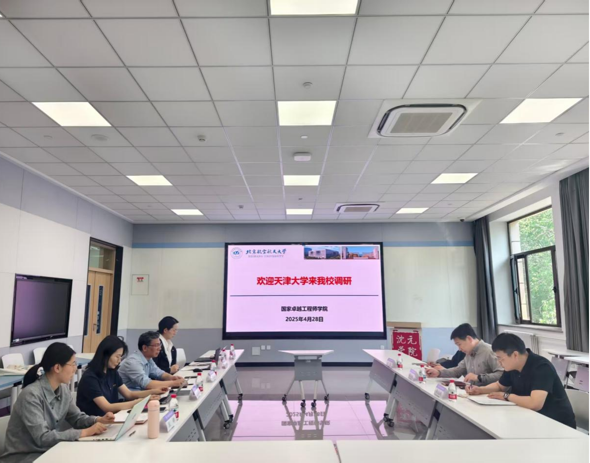 4月28日,天津大学国家卓越工程师学院执行院长栗大超等一行3人到北航开展调研。国家卓越工程师学院常务副院长曹庆华等陪同调研。